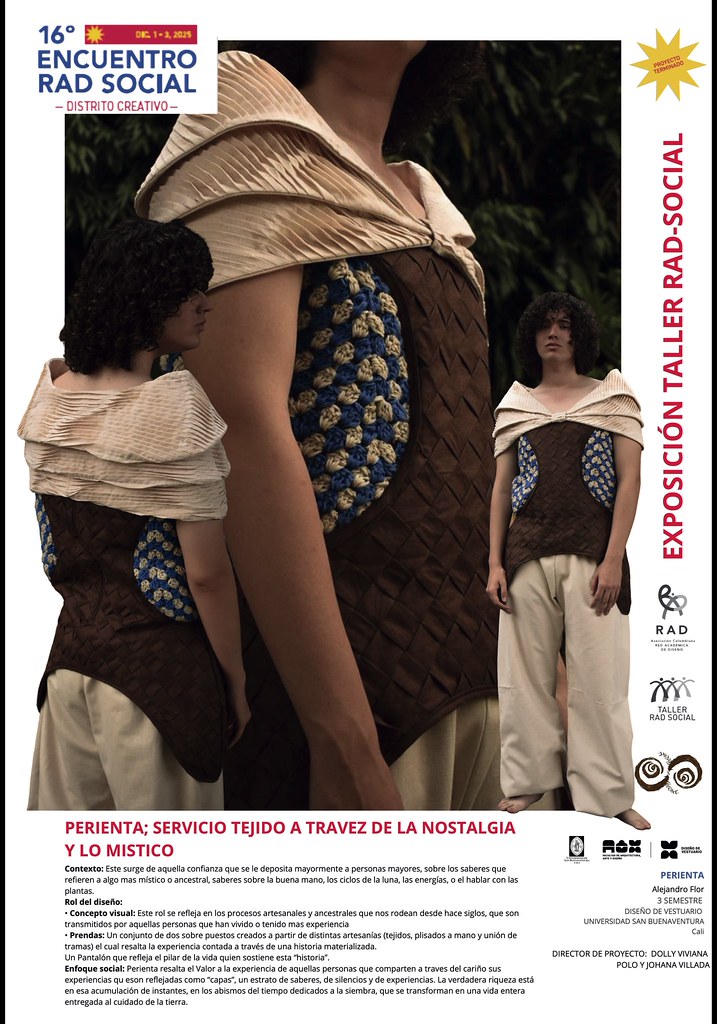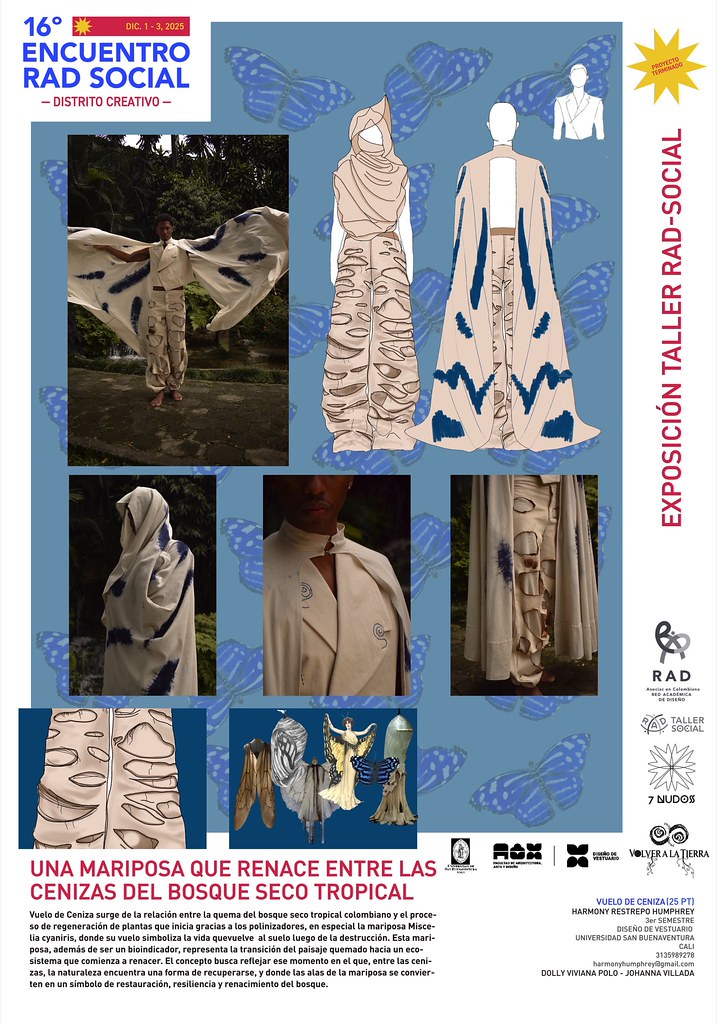 En su versión número 16, llevada a cabo en la ciudad Bogotá entre el 1 y 3 de diciembre en las Universidades Antonio Nariño, Politécnico Grancolombiano y Los Libertadores los estudiantes de Diseño de Vestuario de nuestra institución, Ana Karina Ordoñez, Harmony Restrepo, Valeria Muñoz, Madeleine Márquez y Jhon Alejandro López presentaron su proyecto individual desarrollado en la asignatura Taller 3 – Vestuario, Cultura y Sociedad, el cual desde la colección “Volver a la Tierra” invita a conocer, conectar y cuidar nuestro patrimonio biocultural. La propuesta Perienta, de Jhon Alejandro López fue elegida como el Mejor Proyecto y la propuesta Vuelo de Ceniza de la estudiante Harmony Restrepo fue reconocido como proyecto destacado.