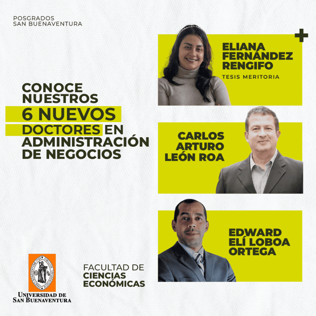 La Universidad de San Buenaventura Cali se complace en presentar a sus seis nuevos doctores en Administración de Negocios, quienes han culminado exitosamente su proceso de formación doctoral, demostrando excelencia académica, rigurosidad investigativa y compromiso con el desarrollo del conocimiento en el ámbito empresarial. Este logro representa un importante aporte a la comunidad académica y profesional, fortaleciendo el vínculo entre la universidad, la sociedad y el sector productivo.