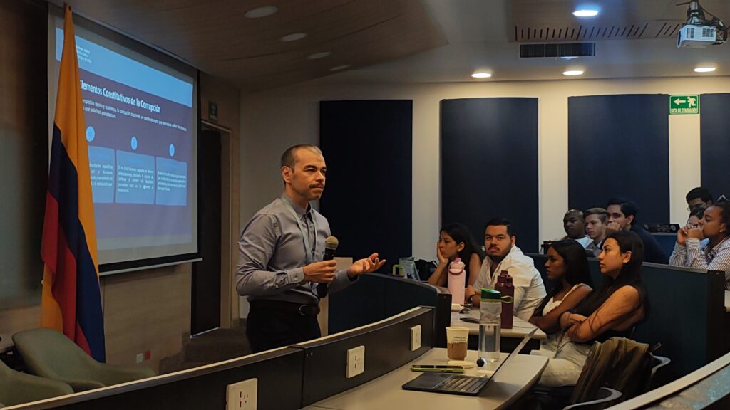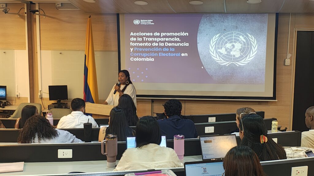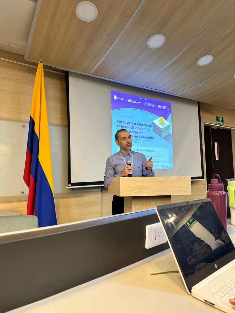 Así mismo, Juan Miguel Gomez Valencia, Asesor Senior de la Oficina de las Naciones Unidas contra la Droga y el Delito (UNODC) para la Región Andina y el Cono Sur; desarrolló un taller aplicado para fortalecer las capacidades analíticas, críticas y de toma de decisiones de la comunidad académica para identificar, interpretar y responder de manera informada frente a riesgos y manifestaciones de corrupción electoral, generación de capacidades para el control social.