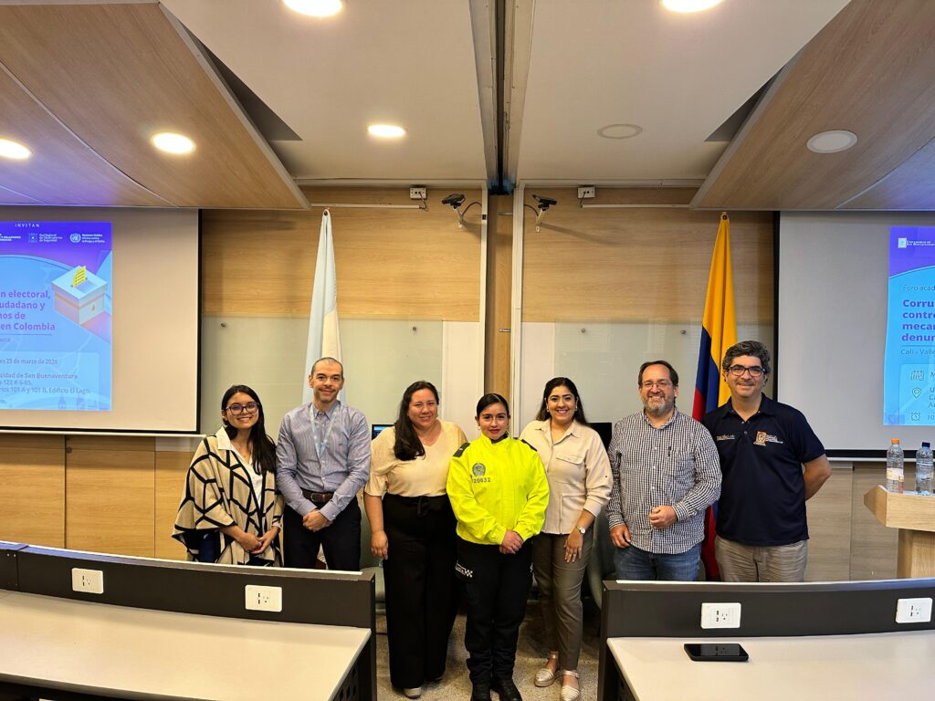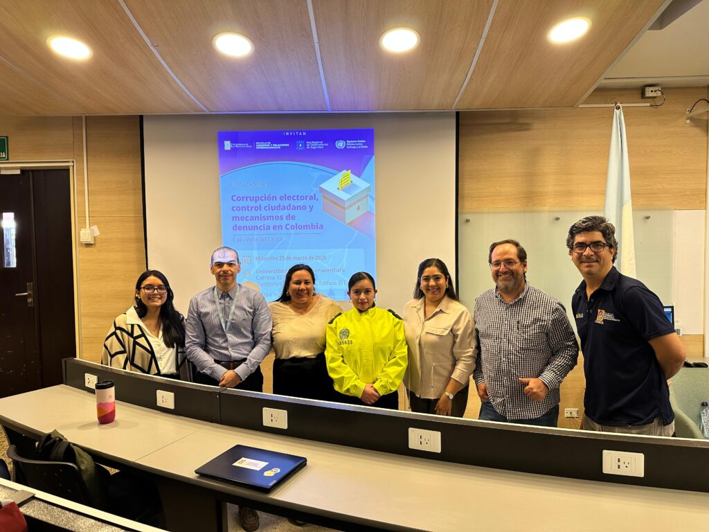En el marco de la Estrategia de Promoción de la Transparencia, fomento de la Denuncia y Prevención de la Corrupción Electoral en Colombia, nuestra Escuela de Gobierno y Relaciones Internacionales, la Oficina de las Naciones Unidas contra la Droga y el Delito UNODC, la Dirección de Investigación Criminal DIJIN/INTERPOL, y la Red Regional de Observatorios de Seguridad, desarrollaron el 25 de marzo de 2026 un foro académico de alto nivel para analizar los principales riesgos de corrupción en los procesos electorales del departamento del Valle del Cauca, fortaleciendo el rol de la ciudadanía como observadora y denunciante, y realizando un ejercicio de sensibilización y promoción del uso de la Línea 157 como un mecanismo institucional clave para la protección de la integridad electoral.